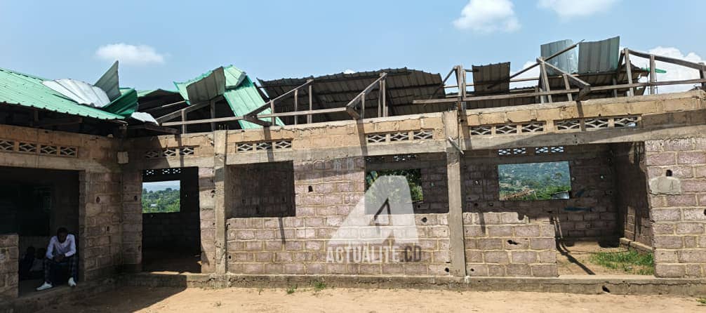 À quelques mètres d’un carrefour où se forme un marché de fortune dont les vendeurs proposent notamment friperies, vin de palme, chikwangues et des grillades, s’érige l’unique école de la localité. Sainte Thérésia, une école conventionnée de plus de 500 élèves, est bordée par un vallon. Bâtiments inachevés, murs lézardés, des toitures déclassées par des vents impétueux, salles de classe sans portes et ni pavement, cet établissement scolaire sous régime de gratuité de l’enseignement n’a pas suffisamment de bancs pour la pléthore d’enfants qu’elle reçoit, et manque presque de tout.